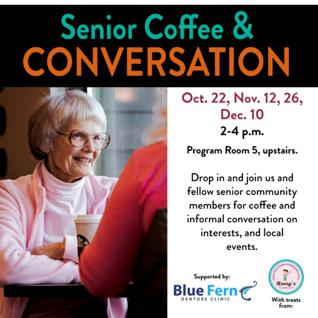 Drop in and join other senior community members, two Wednesdays each month for coffee, treats and informal conversation based on interests and local events. Relax, meet new people in your community, gain insights and enjoy the company.