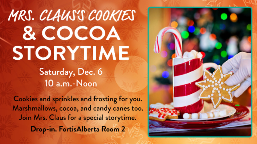 Celebrate the season with a cozy visit to the North Pole—right here at the library! Stop by between 10 AM and 12 PM for a festive drop-in experience with Mrs. Claus herself.
