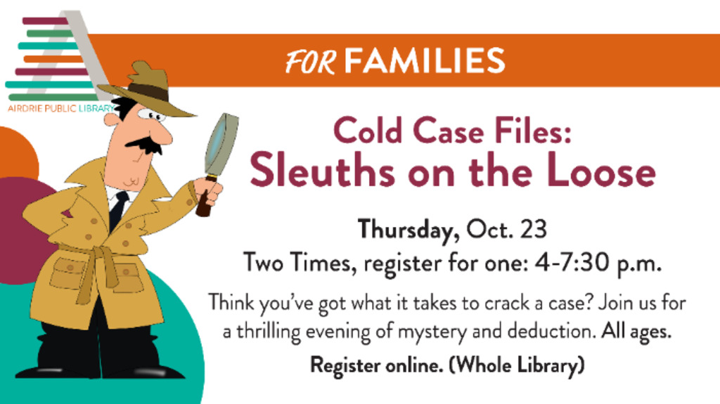 Think you’ve got what it takes to crack a case? Join us for Cold Case Crackers, a thrilling evening of mystery and deduction! We’ll provide everything you need to dive into a selection of legendary fictional cold cases—evidence files, suspect lists, timelines, and more. All you need to bring is your curiosity… and maybe a friend or two to help you solve the mystery.