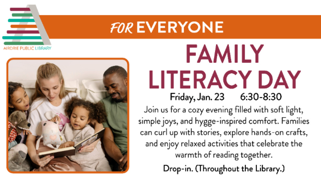 Join us for a cozy Family Literacy Evening filled with soft light, simple joys, and hygge-inspired comfort. Families can curl up with stories, explore hands-on crafts, and enjoy relaxed activities that celebrate the warmth of reading together. With inviting spaces, soothing ambience, and moments made for connection, this special night offers a peaceful pause in the middle of winter. Come unwind, create, and share the magic of Family Literacy Day in a welcoming, cozy atmosphere.