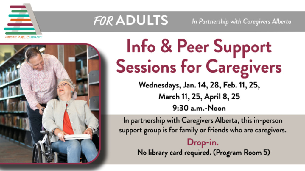 Get support at this caregiver driven and community-based program. The sessions are intended to offer new insights/options to help you become a more confident and creative thinking caregiver. Learn practical strategies to improve your well-being or help point you in the right direction to community resources and government services.
