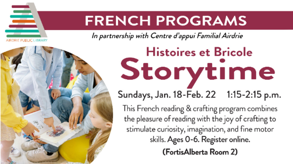 Ages 0-6 Registration required. FortisAlberta Program Room 2.