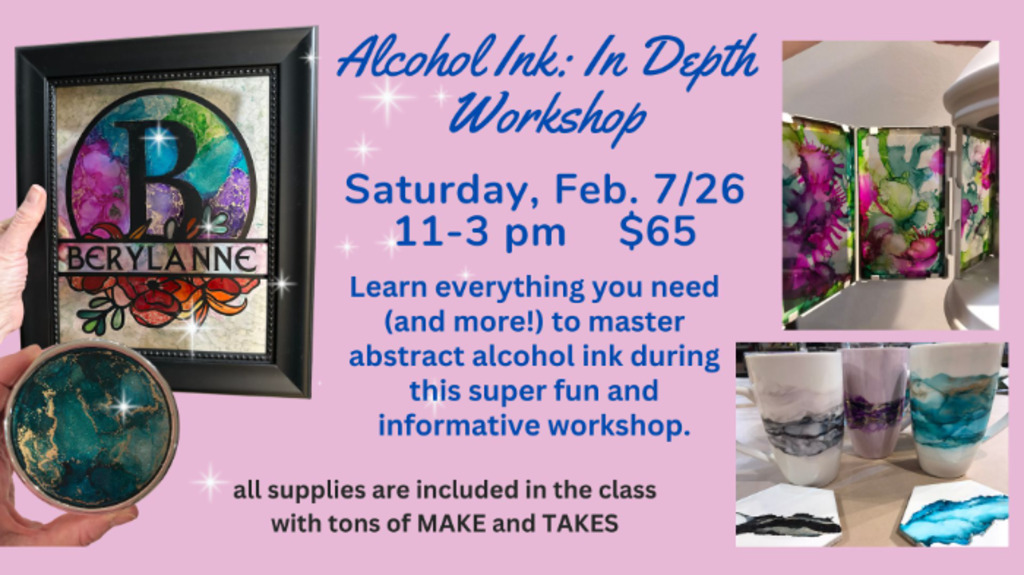 Perfect workshop for those who are interested in learning the basics of abstract alcohol ink techniques and want to experiment and play!