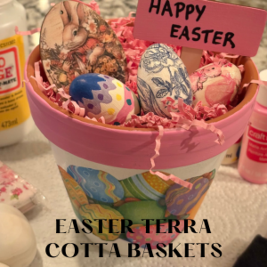 Gather for a playful, hands-on workshop where we turn simple supplies into charming terracotta pots into Easter “baskets” perfect for centerpieces or one-of-a-kind home décor. You’ll paint and decoupage terracotta pots, then paint and/or decoupage three wooden eggs to nestle inside. Finish your creation with sweet ribbons and embellishments to give it that extra personality. No experience required; we’ll guide you through every step, and supply all materials. Leave with a delightful seasonal accent.