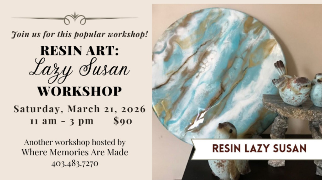 Working with resin is amazing and the possibilities are endless - really! Each participant is given one 15" round solid wood lazy susan to create a beautiful coloured resin pour on. You will be given ample time and product to practice with prior to doing your final pour on your lazy susan so that alleviates the pressure of not being sure how things will go. This way you can test your colour combination choices as well as have the opportunity to see how resin flows and blends etc.