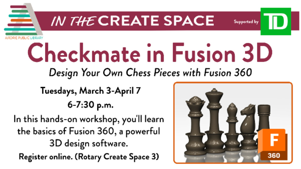 Curious about 3D design and modeling? Start your journey with Checkmate in Fusion 360, an introductory program where we’ll learn the basics of Autodesk Fusion 360 by designing an entire set of chess pieces.