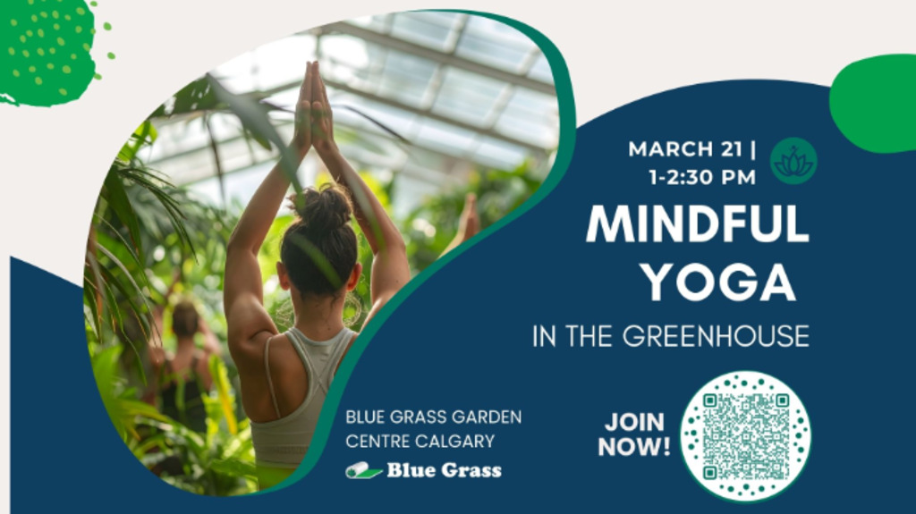 Slow down and reconnect during Mindful Yoga in the Greenhouse at Blue Grass Garden Centre, led by a local yoga instructor: Hope Blackbird. Surrounded by lush greenery, this grounding yoga experience invites you to move mindfully, breathe deeply, and find a moment of calm in a beautiful, plant-filled space.